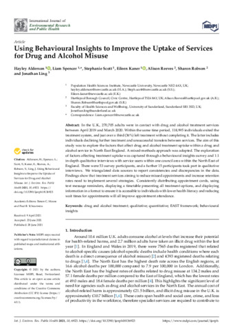 Using Behavioural Insights to Improve the Uptake of Services for Drug and Alcohol Misuse.