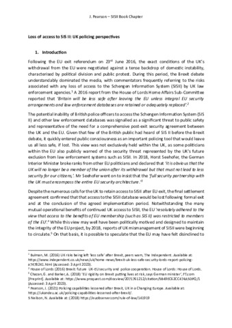 Pearson, Jeremy (2023) Loss of access to SIS II: UK policing perspectives. In: UK-EU Police and Judicial Cooperation Post-Brexit. Hart Studies in European Criminal Law . Hart Publishing - Bloomsbury, Oxford. (In Press)