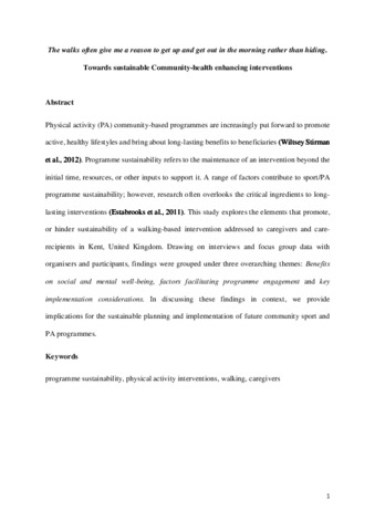 | Uncontrolled Keywords: Programme sustainability, physical activity interventions, walking, caregivers |