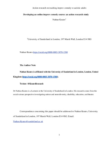Keates, Nathan (2024) Developing an online improv comedy course: an action research study. International Journal of Lifelong Education. ISSN 0260-1370