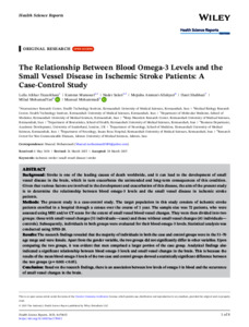 Hezarkhani, Leila Afshar, Mansouri, Kamran, Salari, Nader, Ammari‐Allahyari, Mojtaba, Shahbazi, Hasti, MohamadYari, Milad and Mohammadi, Masoud (2025) The Relationship Between Blood Omega‐3 Levels and the Small Vessel Disease in Ischemic Stroke Patients: A Case‐Control Study. Health Science Reports, 8 (4). e70652. ISSN 2398-8835