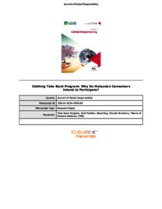 Phaik Nie, Chin, Salamzadeh, Yashar and Ruslan, Rus Harzira Razreen (2025) Clothing take-back program: why do Malaysian consumers intend to participate? Journal of Global Responsibility. ISSN 2041-2568
