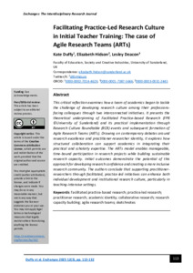 Duffy, Kate, Hidson, Elizabeth and Deacon, Lesley (2025) Facilitating Practice-Led Research Culture in Initial Teacher Training. Exchanges: The Interdisciplinary Research Journal, 12 (3). pp. 113-132. ISSN 2053-9665