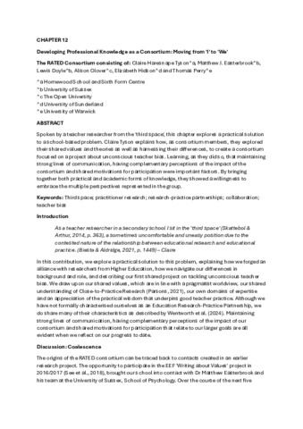 Haresnape Tyson, Claire, Easterbrook, Matthew J., Doyle, Lewis, Hidson, Elizabeth and Perry, Thomas (2025) Developing Professional Knowledge as a Consortium: Moving from 'I' to 'We'. In: The BERA Guide to Practitioner Research: Developing Professional Knowledge in Educational Research and Practice. Emerald Publishing Limited, Leeds, pp. 117-123. ISBN 9781836089636 (In Press)