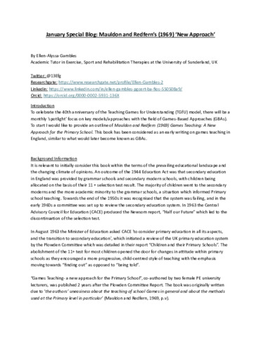 Gambles, Ellen-Alyssa (2022) January Special Blog: Mauldon and Redfern’s (1969) ‘New Approach’ [Blog Post]. TGfU SIG, Online.