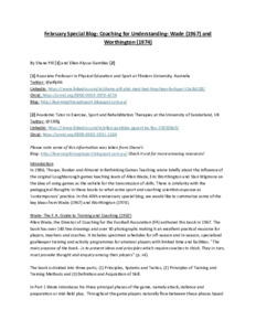 Pill, Shane and Gambles, Ellen-Alyssa (2022) February Special Blog: Coaching for Understanding- Wade (1967) and Worthington (1974) [Blog Post]. TGfU SIG, Online.