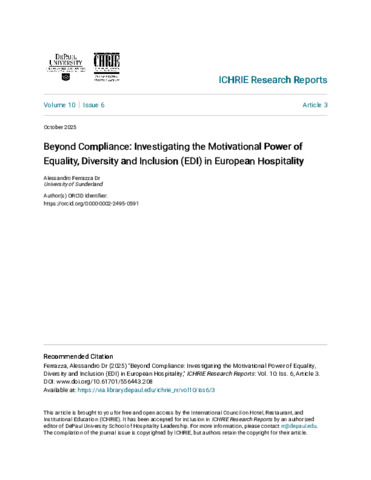 Ferrazza, Alessandro (2025) Beyond Compliance: Investigating the Motivational Power of Equality, Diversity and Inclusion (EDI) in European Hospitality. ICHRIE Research Reports, 10 (6). ISSN 2476-1060