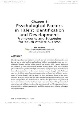Psychological Factors in Talent Identification and Development- Frameworks and Strategies for Youth Athlete Success .pdf Available under License Creative Commons Attribution Non-commercial. Download (428kB) | Preview |