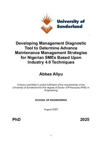 Aliyu, Abbas (2025) Developing Management Diagnostic Tool to Determine Advance Maintenance Management Strategies for Nigerian SMEs Based Upon Industry 4.0 Techniques. Doctoral thesis, The University of Sunderland.
