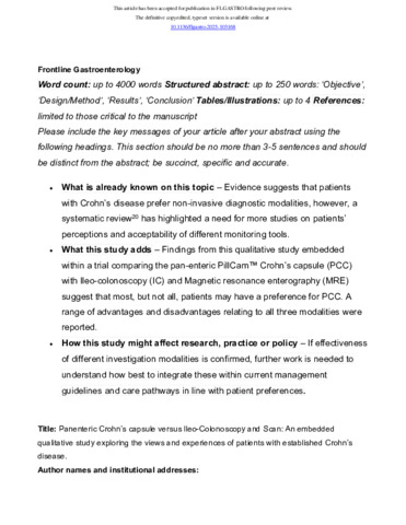 PANenteric Crohn’s capsule versus Ileo-Colonoscopy and Scan: an embedded qualitative study exploring the views and experiences of patients with established Crohn’s disease.
