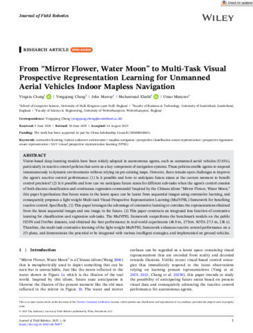 Chang, Yingxiu, Cheng, Yongqiang, Murray, John, Khalid, Muhammad and Manzoor, Umar (2025) From “Mirror Flower, Water Moon” to Multi‐Task Visual Prospective Representation Learning for Unmanned Aerial Vehicles Indoor Mapless Navigation. Journal of Field Robotics. ISSN 1556-4967