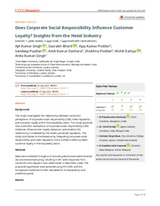 Kumar Singh, Ajit, Bharti, Saurabh, Kumar Poddar, Ajay, Paatlan, Sandeep, Dashora, Amit Kumar, Poddar, Shobhna, Dahiya, Mohit and Singh, Anita Kumari (2025) Does Corporate Social Responsibility Influence Customer Loyalty? Insights from the Hotel Industry. F1000Research, 14 (962). ISSN 2046-1402