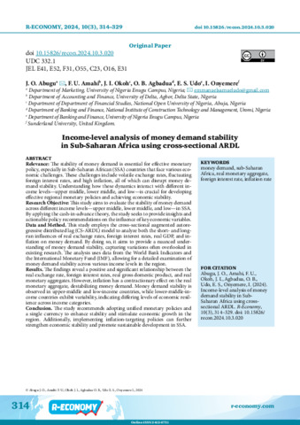 Income-level analysis of money demand stability in Sub-Saharan Africa using cross-sectional ARDL.