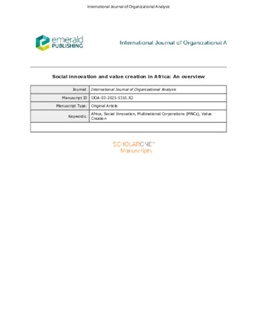 Alo, Obinna (2025) Social innovation and value creation in Africa: An overview. The international journal of organizational analysis.