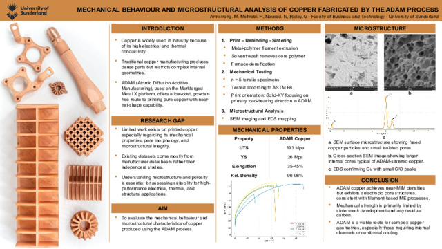 ![MECHANICAL BEHAVIOUR AND MICROSTRUCTURAL ANALYSIS OF COPPER FABRICATED BY THE ADAM PROCESS [thumbnail of MECHANICAL BEHAVIOUR AND MICROSTRUCTURAL ANALYSIS OF COPPER FABRICATED BY THE ADAM PROCESS]](https://sure.sunderland.ac.uk/19705/1.hassmallThumbnailVersion/ISSMART2025_Poster_Armstrong_Copper_AM.pdf.pdf)  Preview |