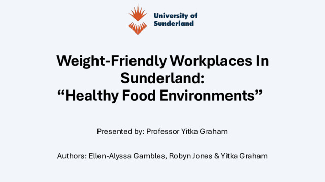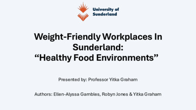 Graham, Yitka, Gambles, Ellen-Alyssa and Jones, Robyn (2025) Weight-Friendly Workplaces In Sunderland- Healthy Food Environments. In: 13th Congress of the International Federation for the Surgery of Obesity (IFSO) European Chapter, 14-17 May 2025, Venice, Italy. (Unpublished)