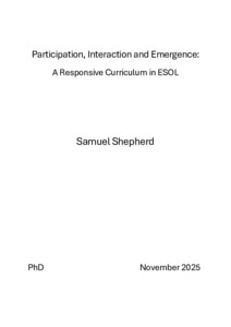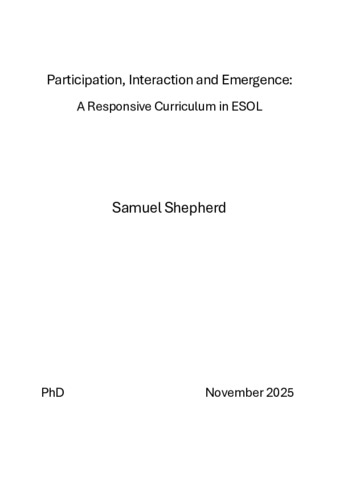 Shepherd, Samuel (2025) Participation, Interaction and Emergence: A Responsive Curriculum in ESOL. Doctoral thesis, The University of Sunderland.
