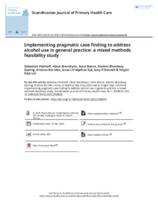 Potthoff, Sebastian, Brendryen, Håvar, Bosnic, Haris, Bhardwaj-Gosling, Rashmi, Iden, Kristina Riis, Njå, Anne Lill Mjølhus, O’Donnell, Amy and Lid, Torgeir Gilje (2025) Implementing pragmatic case finding to address alcohol use in general practice: a mixed methods feasibility study. Scandinavian Journal of Primary Health Care, 44 (1). ISSN 0281-3432