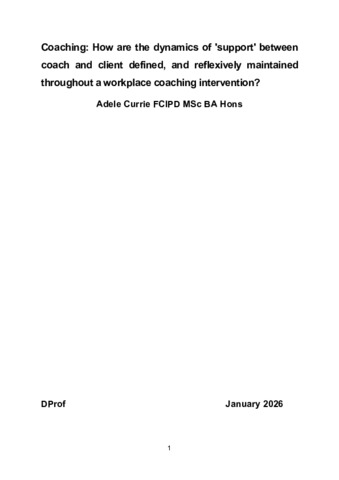 Currie, Adele (2026) Coaching: How are the dynamics of 'support' between coach and client defined, and reflexively maintained throughout a workplace coaching intervention? Doctoral thesis, The University of Sunderland.