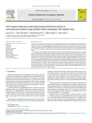 Lo, Carol, Win, Thu Yein, Rezaeifar, Zeinab, Khan, Zaheer and Legg, Phil (2026) LOTL-Hunter: Detecting Multi-Stage Living-off-the-Land Attacks in Cyber-Physical Systems using Decision Fusion Techniques with Digital Twins. Future Generation Computer Systems, 51. p. 108382. ISSN 0167739X