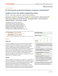 Singh, Ajit Kumar, Poddar, Ajay Kumar, Kumar, Sumit, Dahiya, Mohit, Dashora, Amit Kumar, Kumar, Sachin, Paatlan, Sandeep, Sharma, Anmol, Bakshi, Neetesh and Singh, Anita Kumari (2025) Do hotel green practices influence customer satisfaction? Evidence from the Indian hospitality sector. F1000Research, 14 (1480). ISSN 2046-1402
