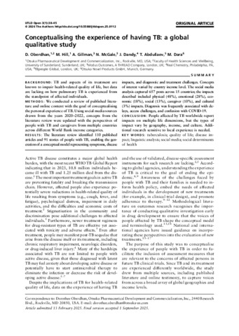 Oberdhan, Dorothee, Hill, M, Gillman, A, McGale, N, Dandy, J, Abdullaev, T and Dara, M (2026) Conceptualising the experience of having TB: a global qualitative study. IJTLD open, 3 (1). pp. 38-45. ISSN 3005-7590