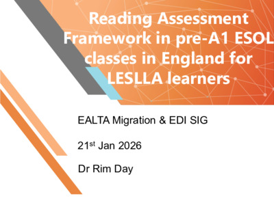 Day, Rim (2026) Reading Assessment in Pre-entry ESOL. In: EALTA Migration & EDI SIG, 21 Jan 2026, Online.