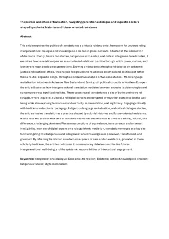 The politics and ethics of translation, navigating generational dialogue and linguistic borders shaped by colonial histories and future-oriented resistance.pdf - Accepted Version Available under License Creative Commons Attribution. Download (150kB) | Preview |