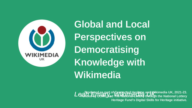 ![Global and Local Perspectives on Democratising Knowledge with Wikimedia presentation for the Museum Ethnographers Group conference [thumbnail of Global and Local Perspectives on Democratising Knowledge with Wikimedia presentation for the Museum Ethnographers Group conference]](https://sure.sunderland.ac.uk/20120/1.hassmallThumbnailVersion/Democratising%20Care%20Democratising%20Knowledge%20Leah%20Emary%20Wikimedia%20UK%20Presentation%20Slides%20for%20MEG.pdf)  Preview |