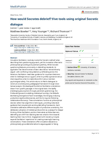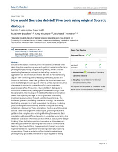 Bowker, Matthew, Younger, Amy and Thomson, Richard (2026) How would Socrates debrief? Five tools using original Socratic dialogue. MedEdPublish (2016), 16. p. 5. ISSN 2312-7996