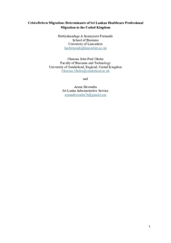 Fernando, Hettiyakandage A Saumyasiri, Okeke, Okeoma John-Paul and Devendra, Aruna (2026) Crisis-Driven Migration: Determinants of Sri Lankan Healthcare Professional Migration to the United Kingdom. In: 22nd CIRCLE International Conference 2026: NextGen Business: Sustainability & Digitalisation, 08-11 Apr 2026, Jan Wyzykowski University, Polkowice, Poland. (In Press)