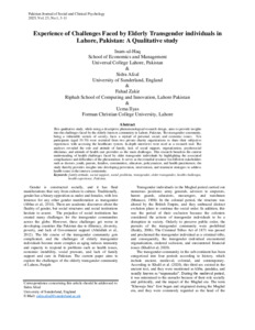 Experience of Challenges Faced by Elderly Transgender individuals in Lahore, Pakistan: A Qualitative study.