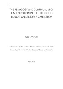 Cossey, Will (2026) THE PEDAGOGY AND CURRICULUM OF FILM EDUCATION IN THE UK FURTHER EDUCATION SECTOR: A CASE STUDY. Doctoral thesis, The University of Sunderland.